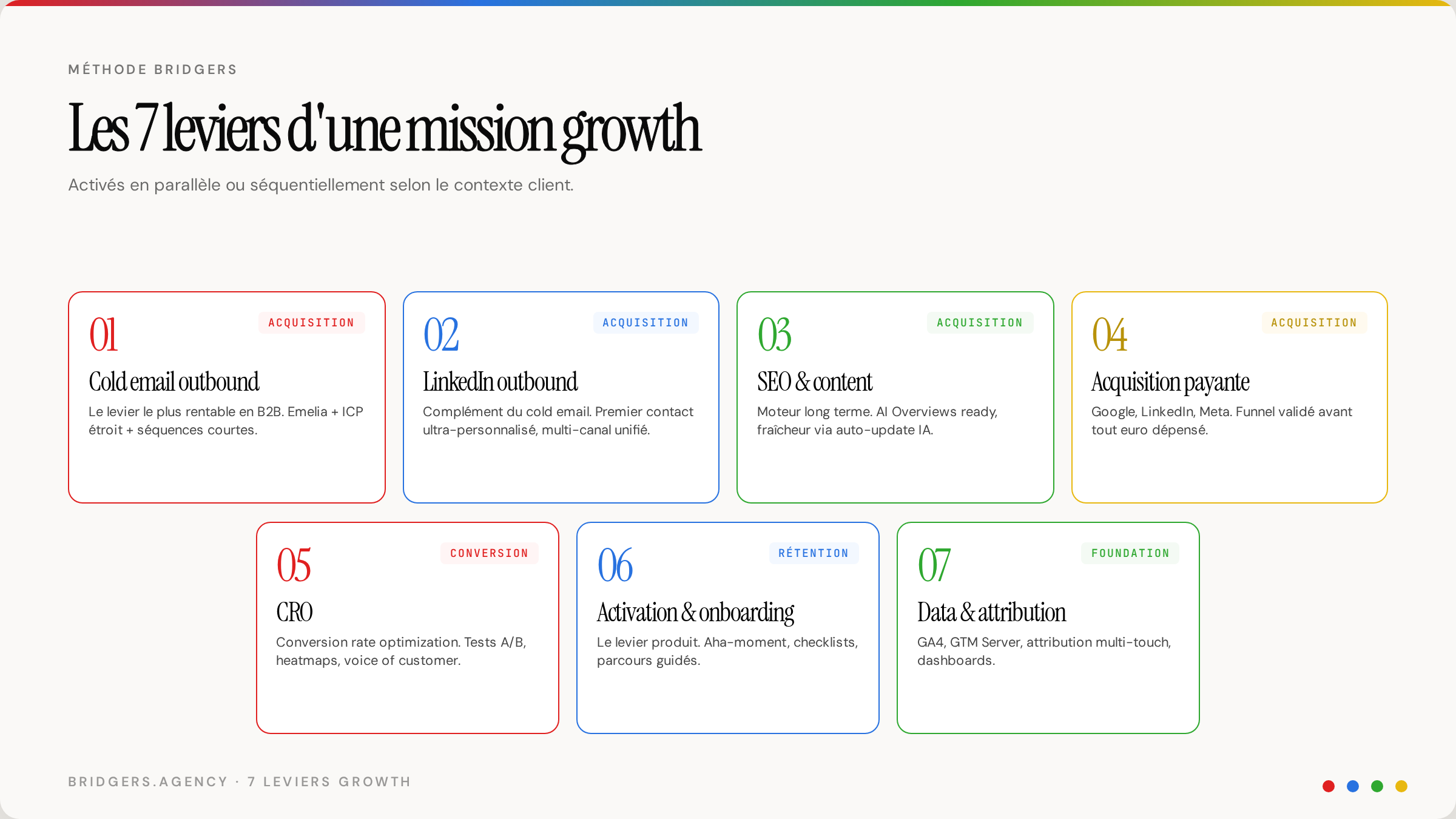 Les 7 leviers que Bridgers active sur une mission growth marketing