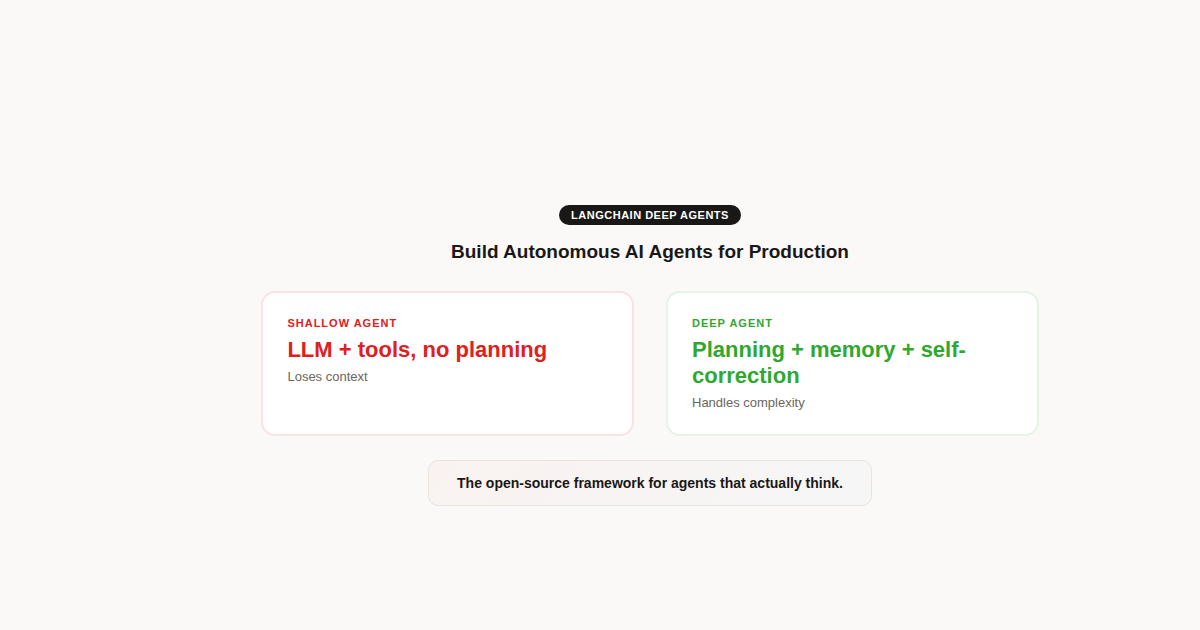 "Shallow" AI agents (an LLM with a few tools) quickly hit their limits on complex tasks: context loss, no planning, inability to coordinate subtasks. LangChain built Deep Agents to solve these problems with an architecture approach they call an "agent harness," a level of abstraction above the traditional framework.